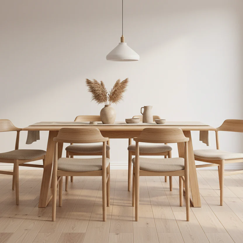 Crafted from beautiful Tasmanian Oak, the Bondi Dining Table offers a relaxed yet refined centrepiece for your dining space. Its generous proportions, clean lines and light natural finish create a timeless, coastal-inspired feel that's perfect for both casual meals and stylish entertaining.