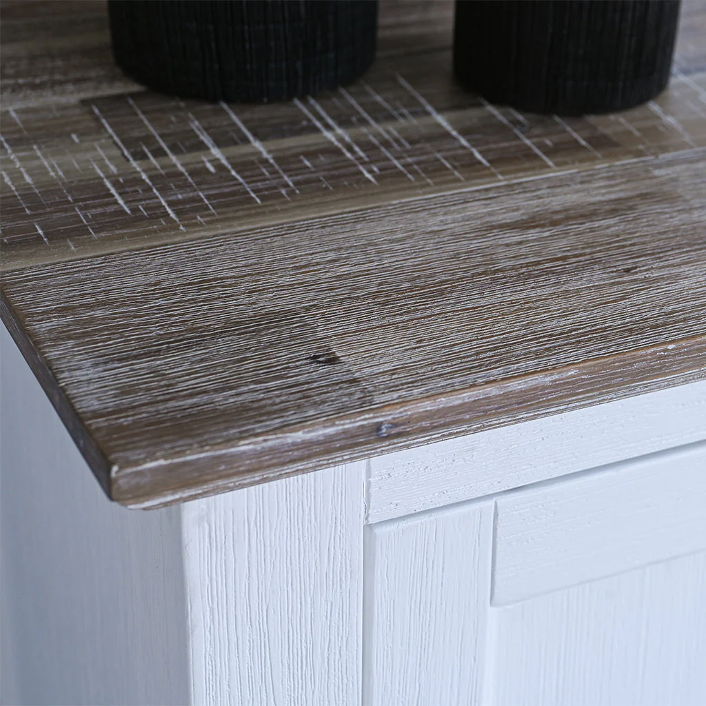 Complete your living room with the Collaroy TV Unit, a stylish and functional addition to the Collaroy range. Crafted from durable acacia hardwood, this unit combines rustic charm with modern simplicity. With a textured woodgrain top and a crisp white base, the Collaroy TV Unit provides practical storage solutions while enhancing your entertainment space with timeless elegance.